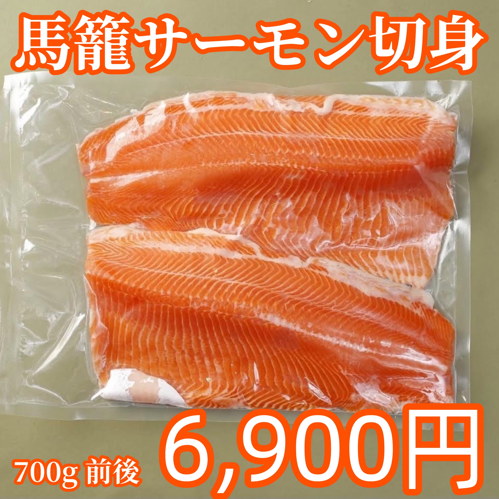 新鮮な馬籠サーモンを切身にして度を保ったまま真空パック冷蔵。